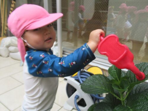 ジョウロを手にすると自然と紫陽花の元へ行き、お友だちと一緒に順番にお水をあげていました👏