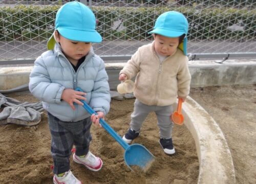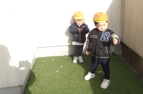 乳児クラスさんもお散歩へ行く予定だったので途中まで一緒に行きましたよ