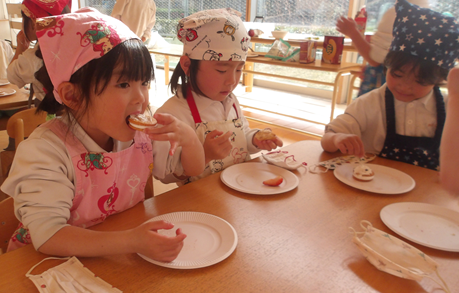 掃除が終わるころには、「ねえ見て!こんなに拭けたよ!」「わたしこのくらい拭けたよ!」と雑巾を見せながら嬉しそうに友だちに伝え合い、達成感を共有している姿も見られました![]()