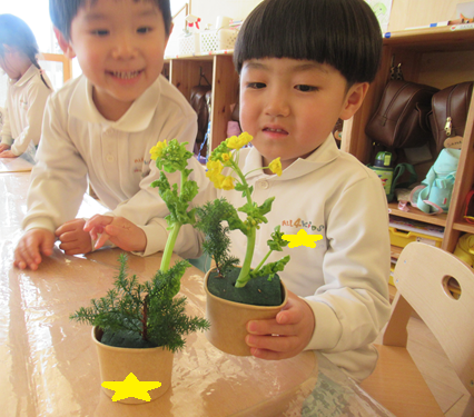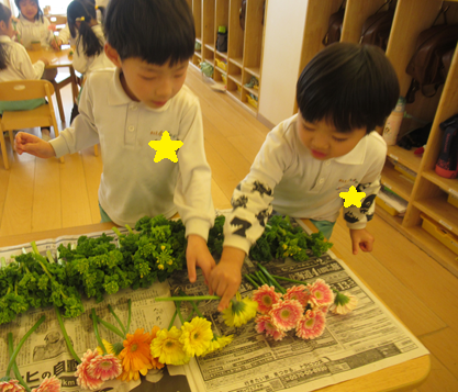 お花を見ると「今日どんなお花がある?」と楽しみにしていたお友だちもいましたよ