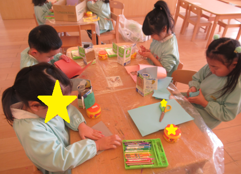 製作チームは、牛乳パックを使ってひなまつりの製作をしましたよ😄✨