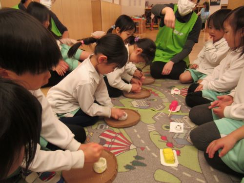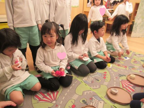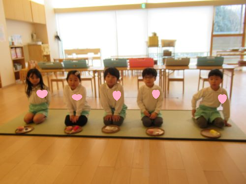 きりん組さんは来月の卒園茶会、ぱんだ組さんは来年度きりん組さんに向けて、きりん組さんがお菓子をやお茶を運んでくれました![]()