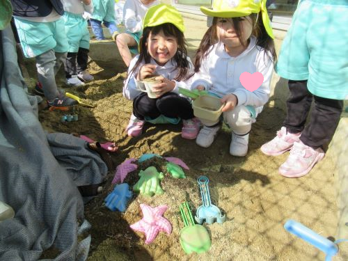 今日はお天気も良かったので、多数決をとりうさぎぐみさんの大勢の希望で砂場に行くことが決定しました🌞