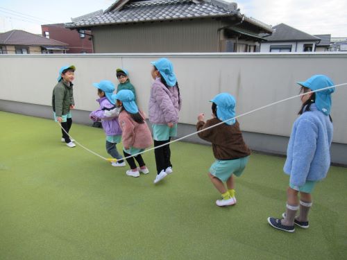 自分たちで大繩をつくり、回して大縄跳びをみんなで楽しみましたよ😆🌟
