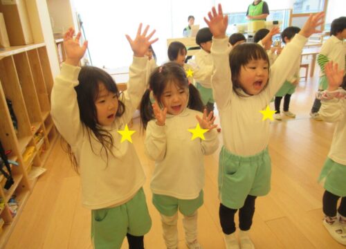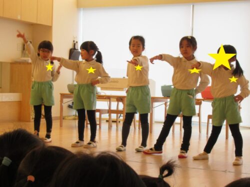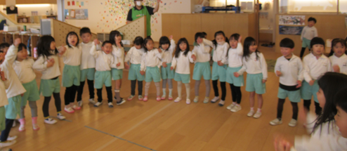今日は、幼児組さん全員で、ハッピースプリングに向けて踊りや歌を行いました😆