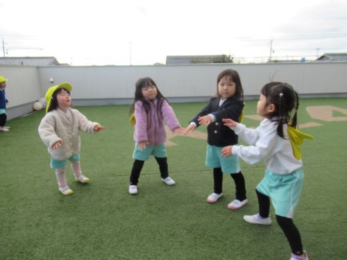 お友だちと仲良く手を繋いで元気よくお歌も歌っています🎵