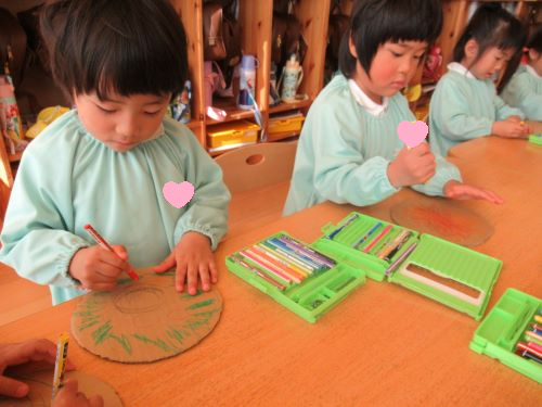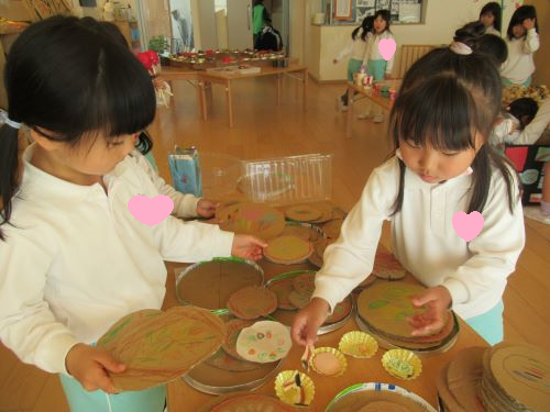 ぱんだぐみさんはうさぎぐみさんが描いたピザを入れるお皿を製作してくれました🍕💖