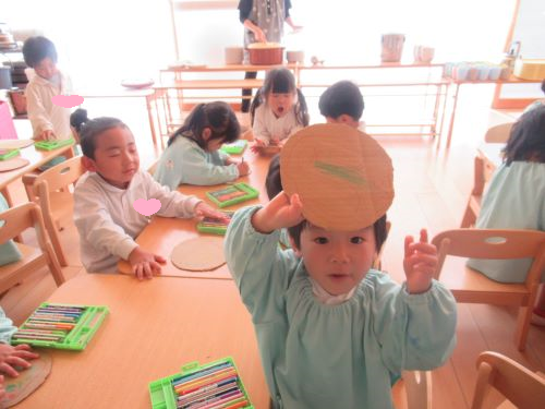 「ピザにはトマトとチーズと、、、」ピザに何が乗っているかよく考えながらお友だちとお話をしてお絵描きを楽しみました✨