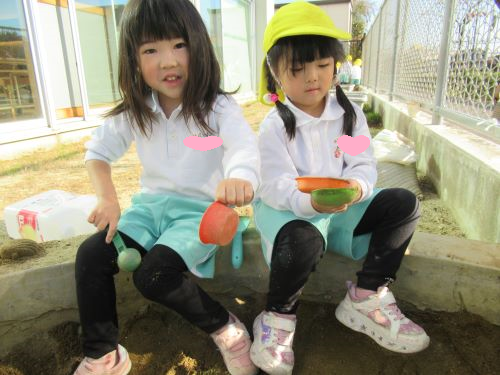 久しぶりのお砂場に大興奮のみんなは、お友だちとお話しながらお砂でおままごとをしたり、、、