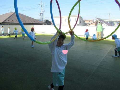 なわとびを自分のお家に見立ててグルグル走り回って飛びっきりの笑顔も見せてくれました😍