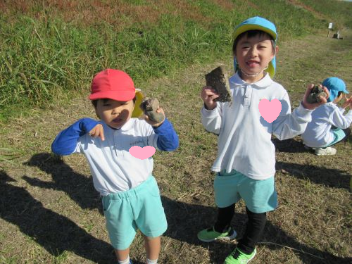 グラウンドには変わった石や大きな石が落ちていたようで手にいっぱいの石を見せてくれましたよ🤗🌟