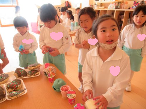 体操教室の前と後にはリトルアーティスト展で屋台ごっこをして楽しみましたよ😊💖