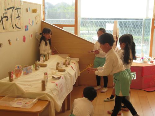 おおきい組さんがお店屋さんになってお客さんにお寿司を提供したり、お友だちと順番にお店屋さんとお客さんを代わったりして楽しみましたよ😍