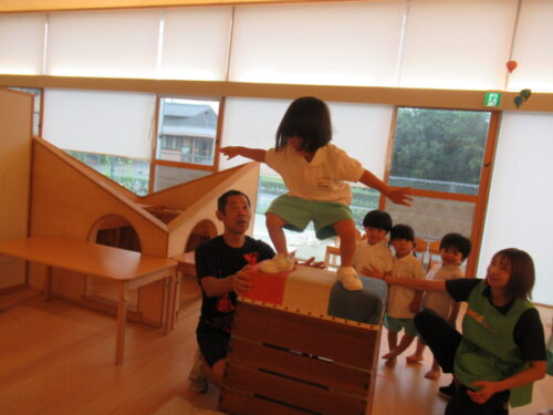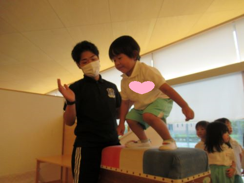 跳び箱から降りることに少し怖がり、先生と一緒に降りる子どもたちや、何の躊躇もなく大胆に跳び箱から飛び降りる子など色々な一面が見られましたよ😆🌟