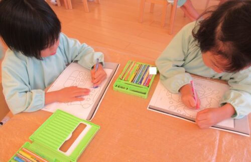何色にしようかな~? はみ出さないように塗りたい!! 真剣な表情で塗っていきます😄✨