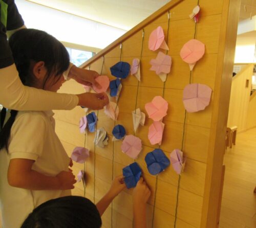 きりん組さんは、塗り絵の合間にあさがお製作もしましたよ😊