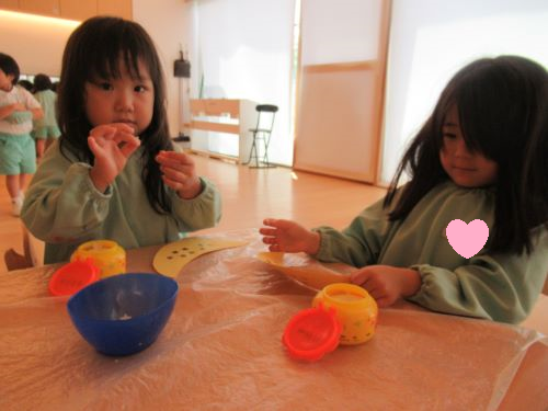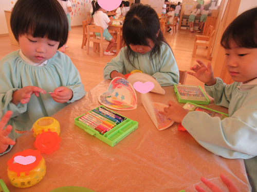 雨が降っていたので、今日はうさぎ・ぱんだ・きりんぐみさん皆お部屋の中で製作活動をして過ごしました✨