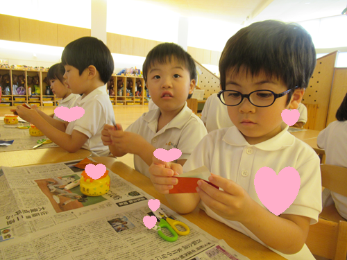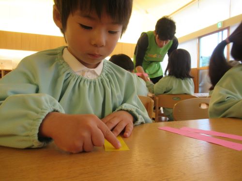 くるっと丸めてわっかざり作りに真剣な表情で取り組んでいましたよ☺💖