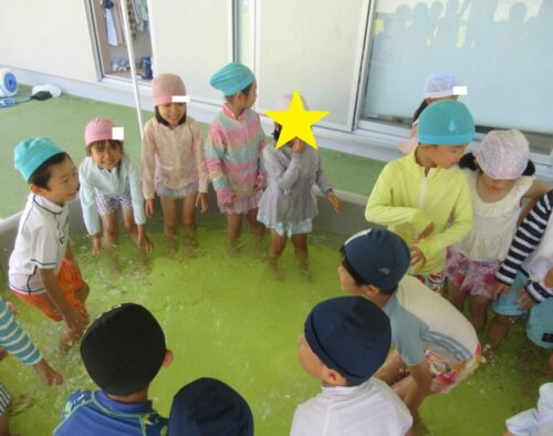 きりん組さんはリトミックの前にプール遊びをしました😊