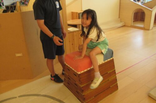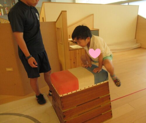 こちらのお友だちは跳び箱に手をついて馬乗りの練習もしました✨