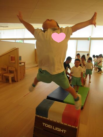 「先生、みててね!ジャーンプ!!!」ととっても楽しそうに跳び箱に取り組むことができました😊✨