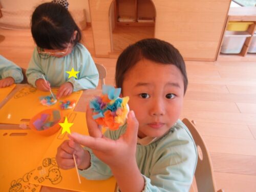 「ふぅ~😚」と吹くとブクブク出てくる泡に目をキラキラさせながら楽しみました😄