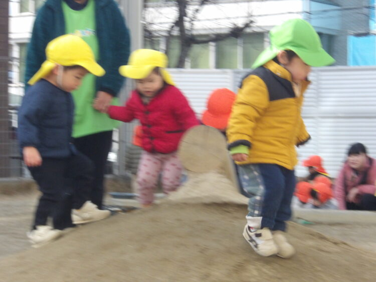 ひよこ組、あひる組、うさぎ組で園庭で過ごしました。いろんな遊びを楽しんでいましたよ。