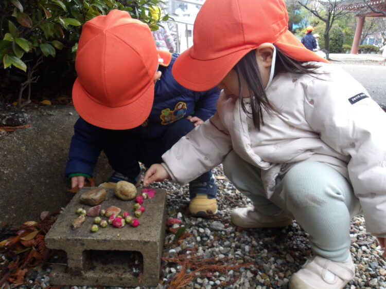 袋にたくさん入っている物を「ポテトチップス!!」とお友達とたくさん集めていたりして楽しんでいましたよ![]()