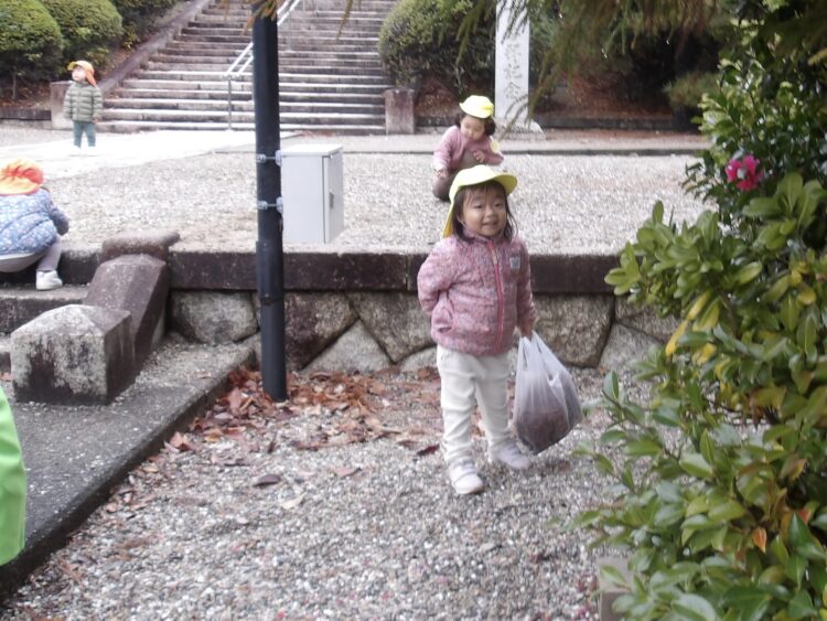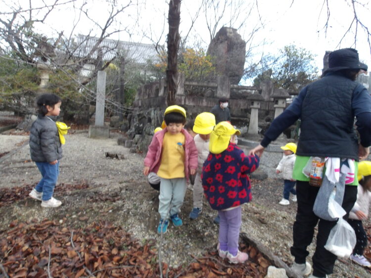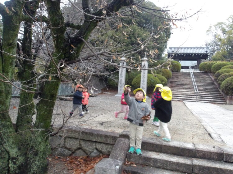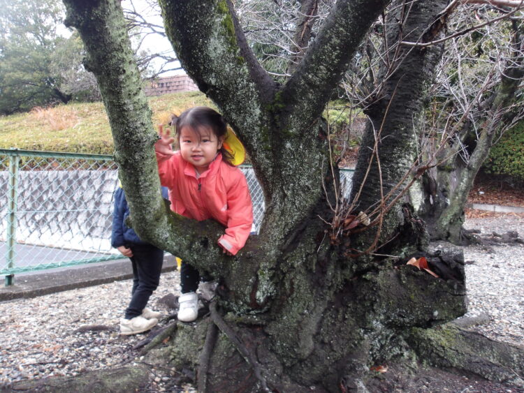 今日は、向かい風が強い日でしたが、皆子どもたち同士や先生と手を繋いで西山公園まで頑張って行きましたよ![]()
