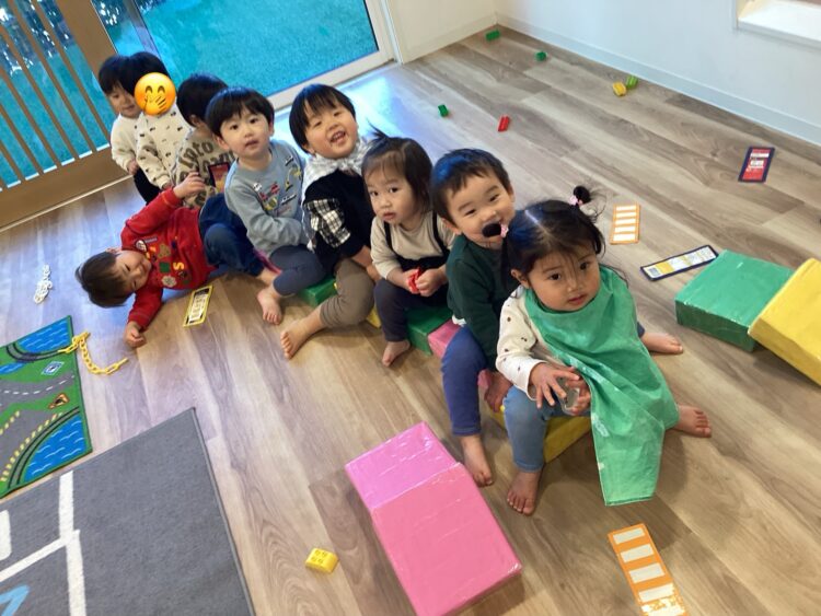 あひる組さん、お部屋を出る前にはバスに乗ってを歌ってガタンゴトンとしてニコニコ楽しんでいましたよ![]()