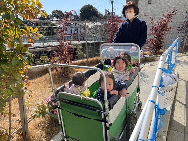 今日は幼稚園まで行きました