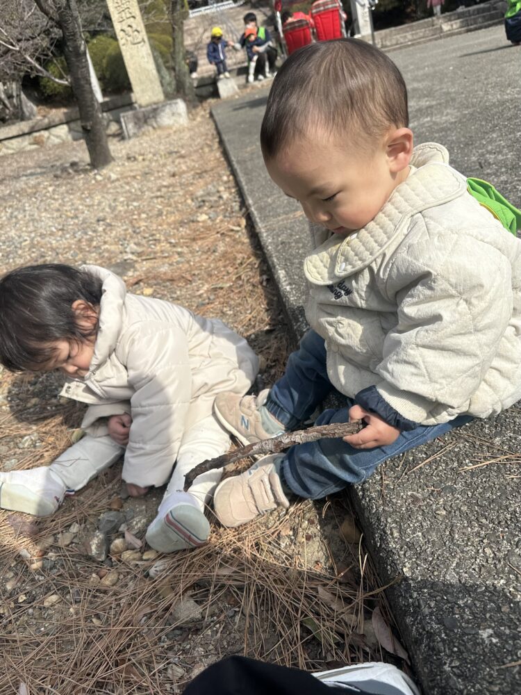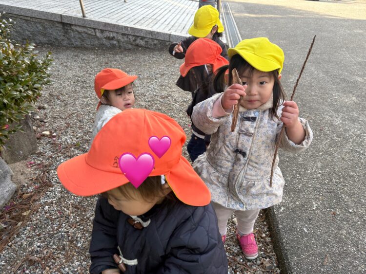 見て見て!面白い木の棒を見つけたよ🤭