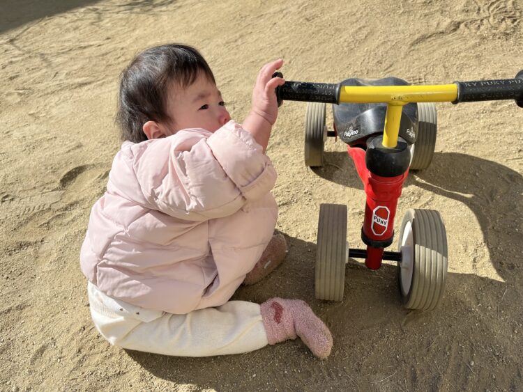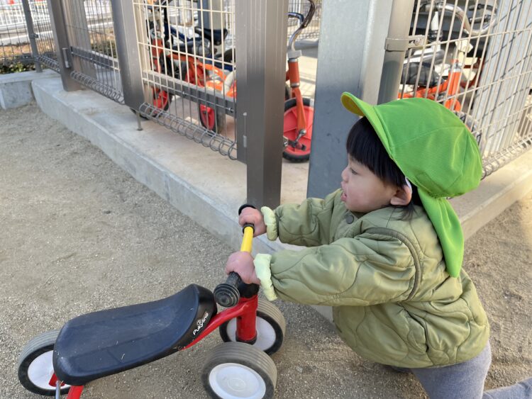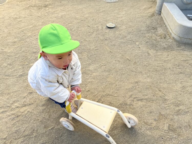 最近は三輪車や手押し車に興味を持って遊んでいます![]()