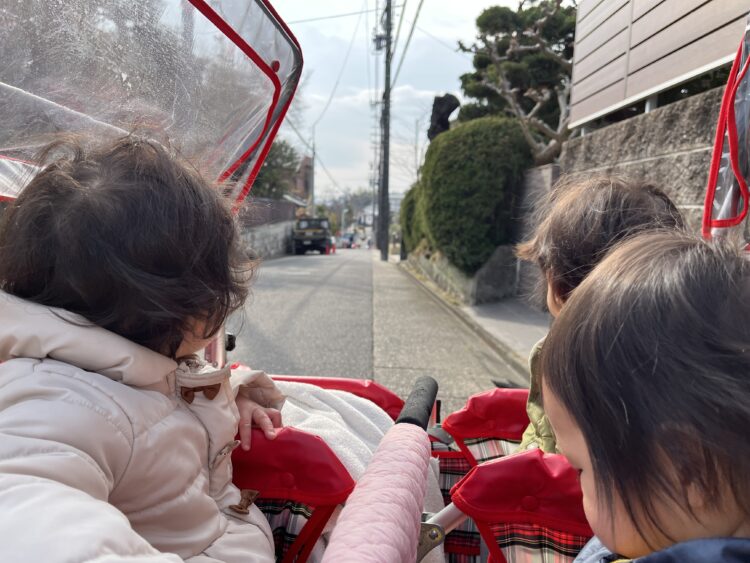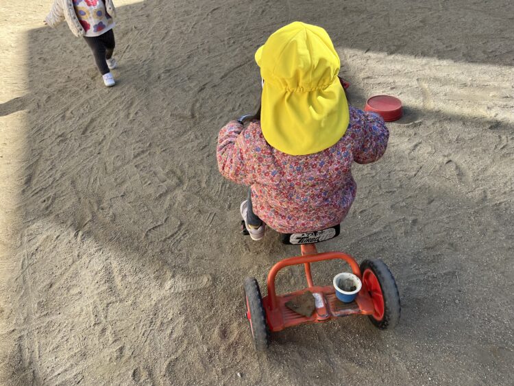 三輪車の後ろに置いて慎重に動かしたり、