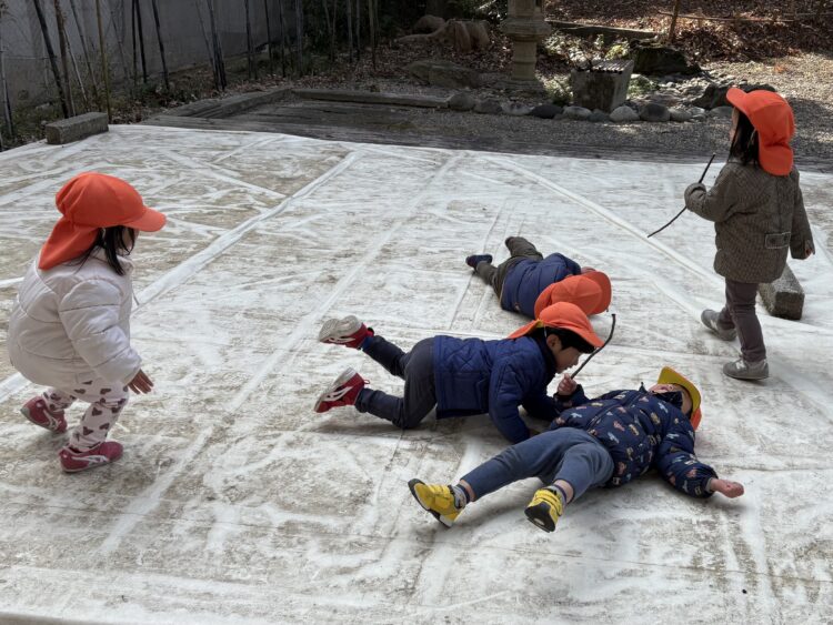 皆でほふく前進で進んでみたり、