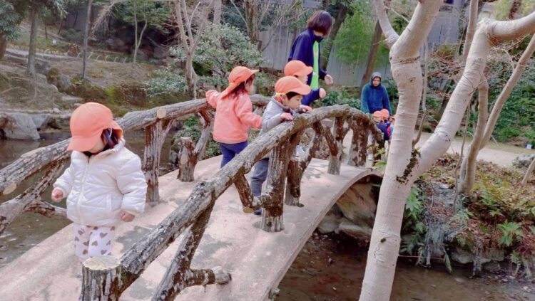 お友達と手を繋ぎお散歩したり😆