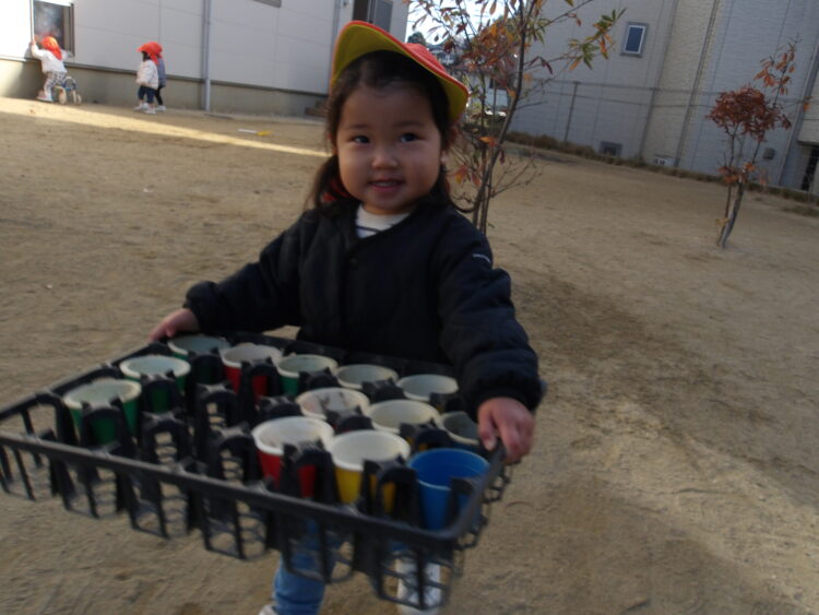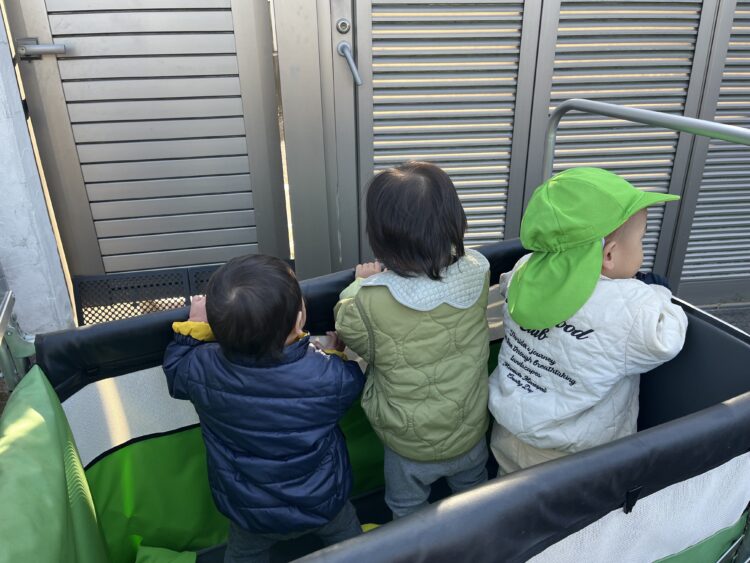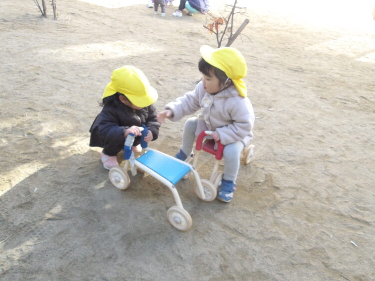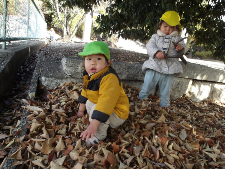 手押し車チームは一緒に走ったり、葉っぱを乗せて砂場まで運ぶ姿が見られました🍂