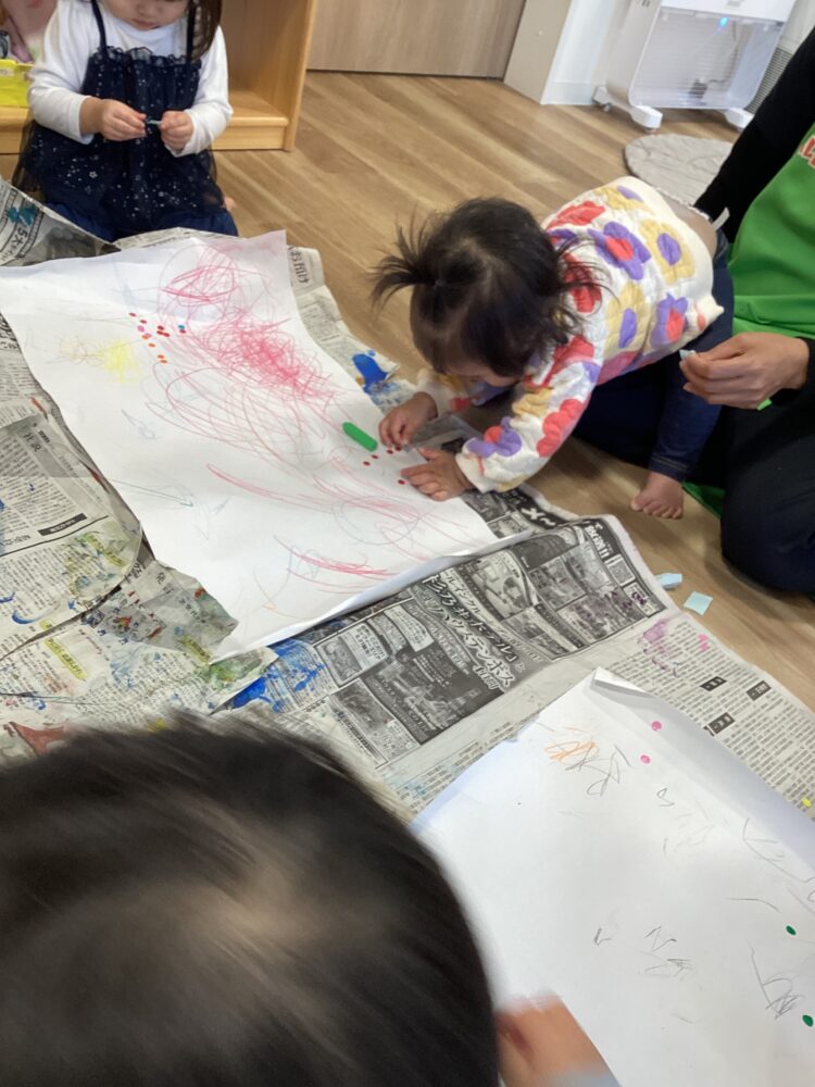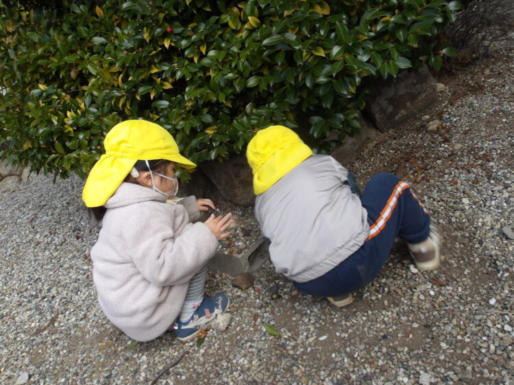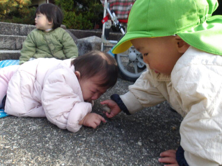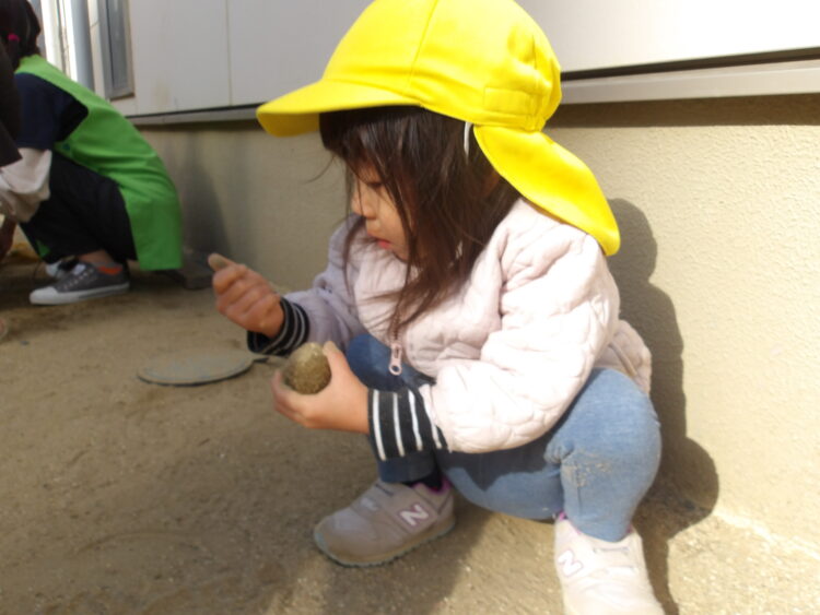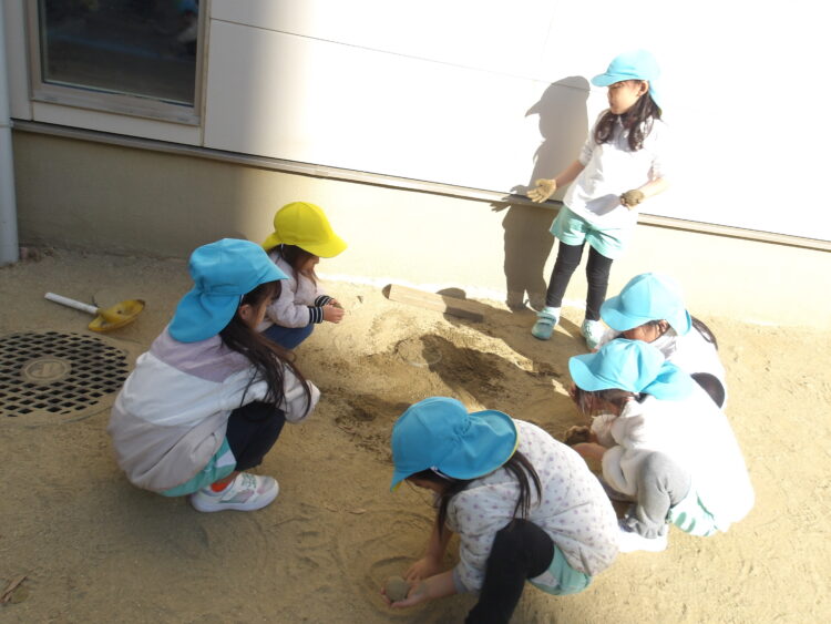 そら組さん、にじ組さん、たいよう組さんのお姉さんが作っている泥団子見て一緒に遊ぶ姿が見られました!