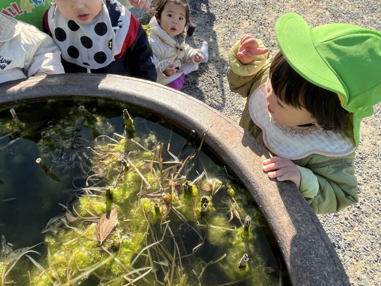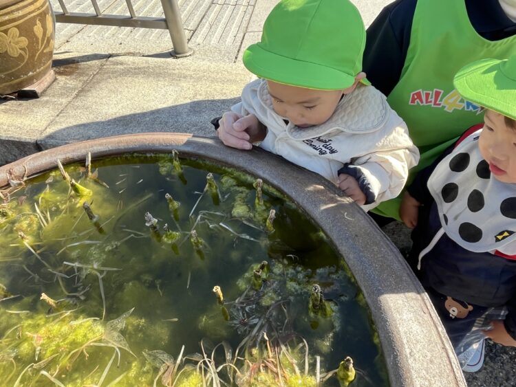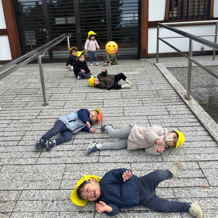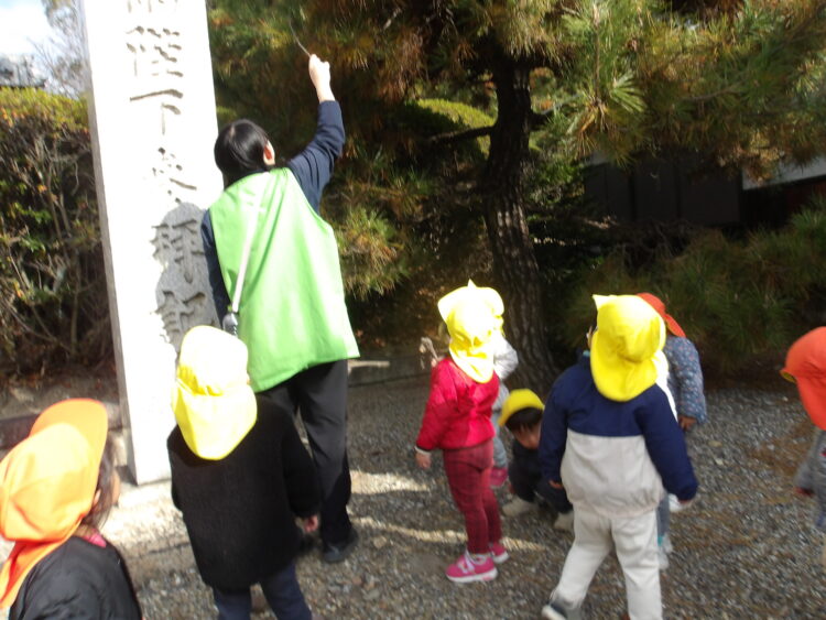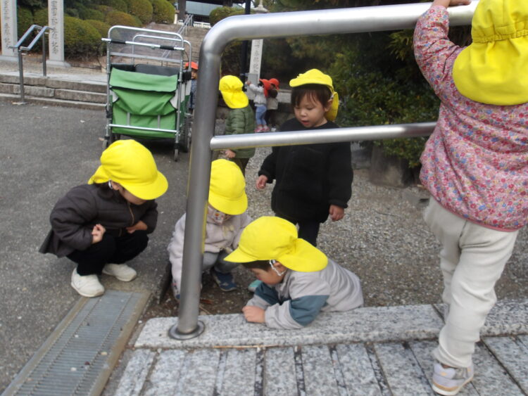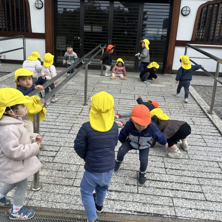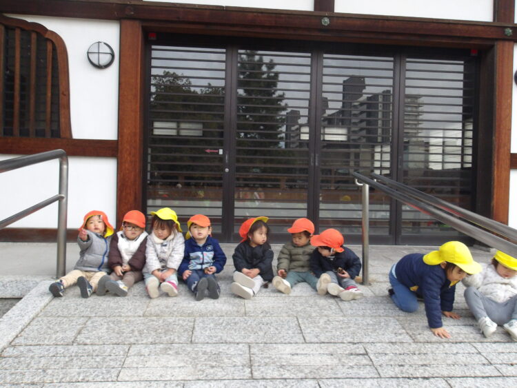 今日はひよこ組、あひる組、うさぎ組で舎利殿にお散歩に出かけました。