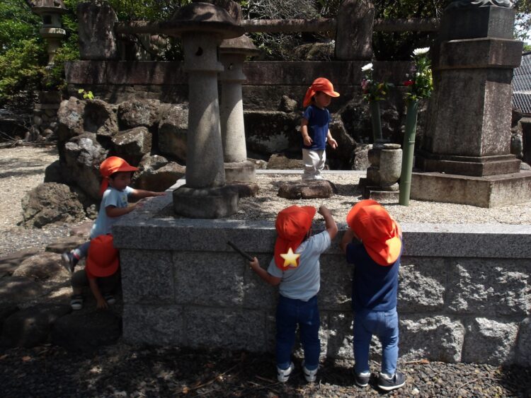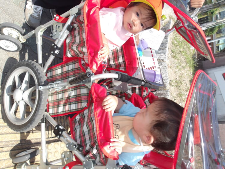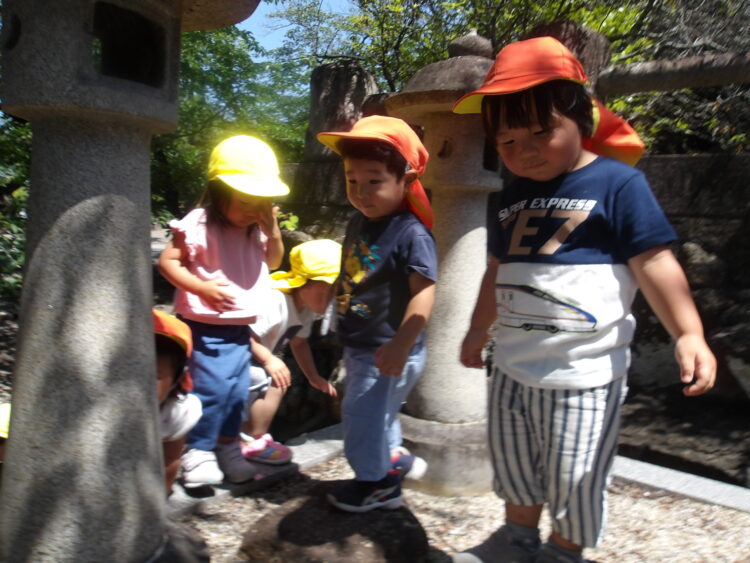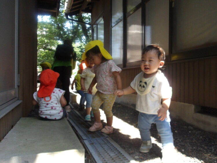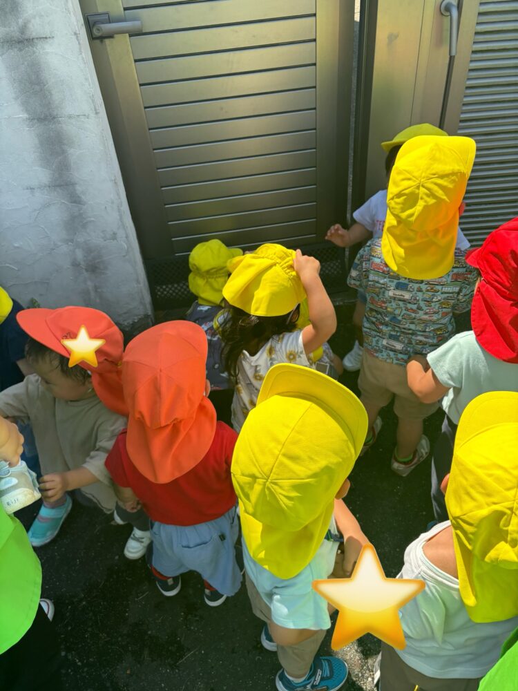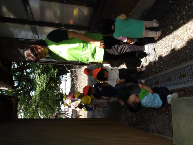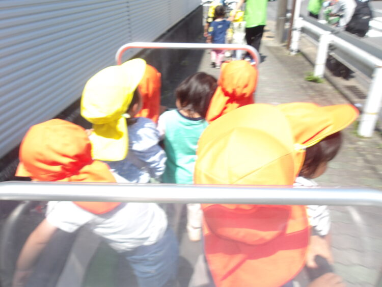 あひる組、うさぎ組で保育園の周りを歩きました。
