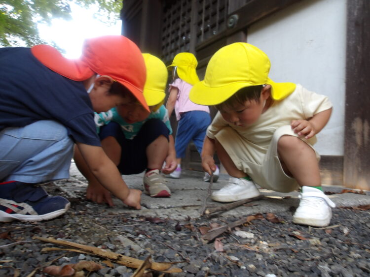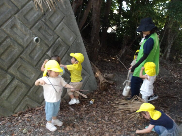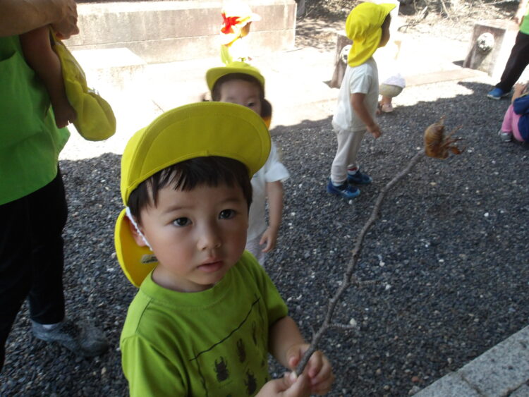 虫を探しをしたり、木の葉や枝を拾って遊びました。