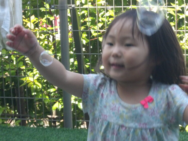 テラスでシャボン玉をしました![]()