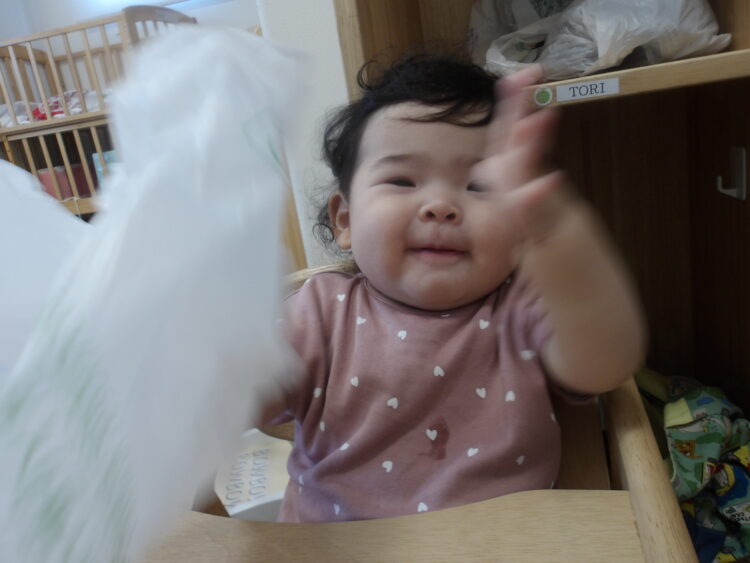 お部屋では、買い物袋を渡すと手の持ち音を楽しんでいました![]()
