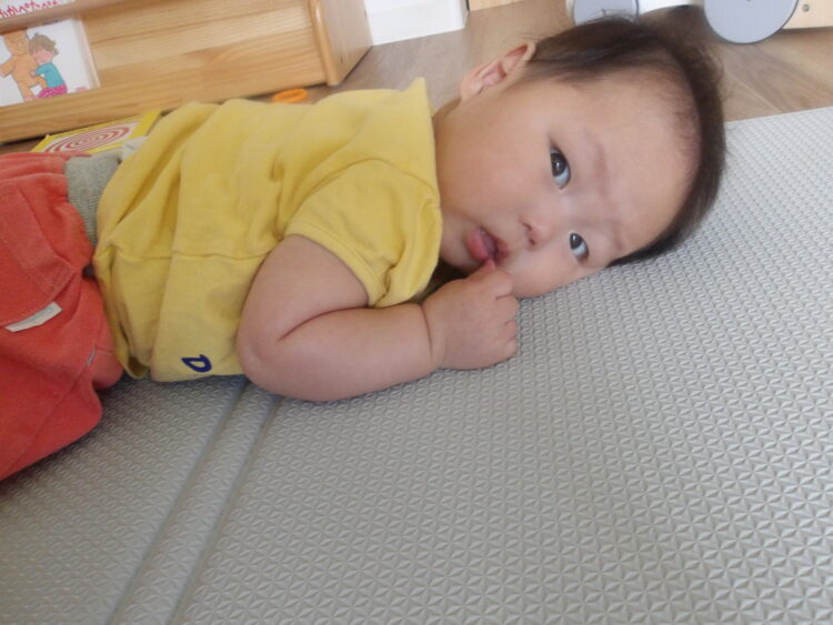 寝返りも上手になり少し疲れたかな![]()