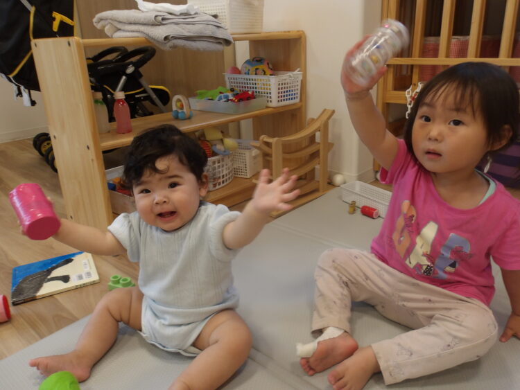 お部屋では、マラカスを振って楽しく遊びました。