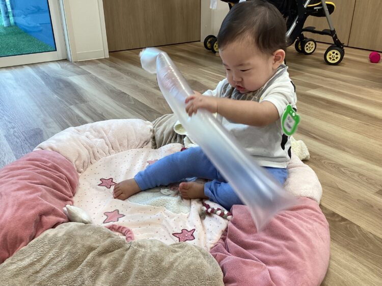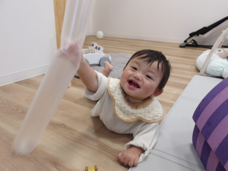 渡すと手に取ってくれ、シャカシャカと音が鳴り遊んでいました![]()