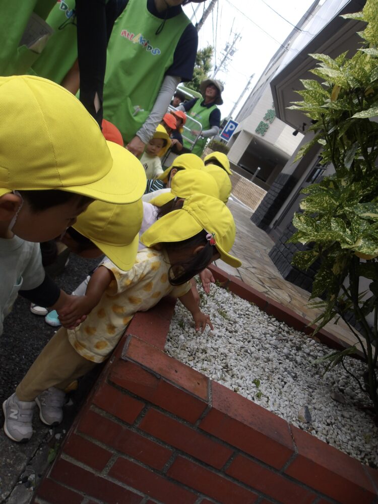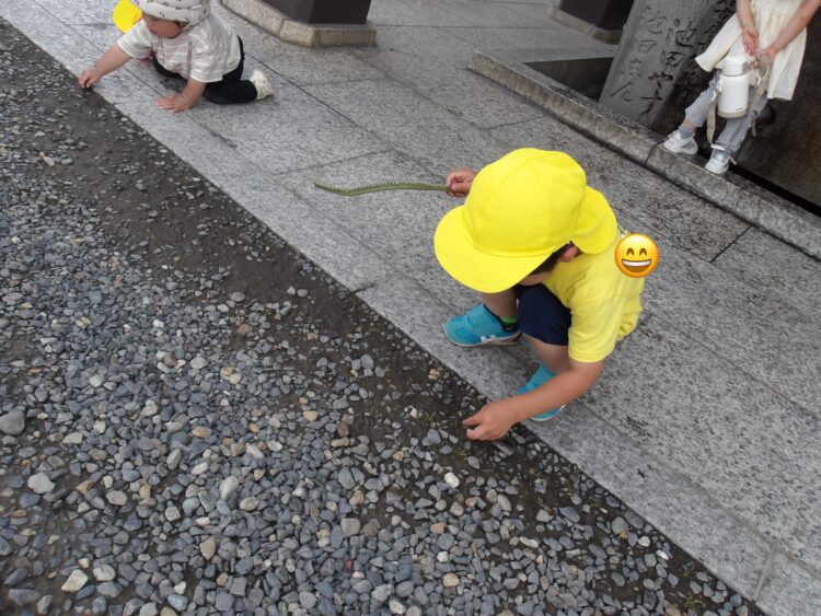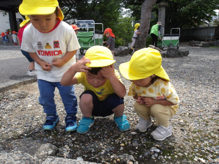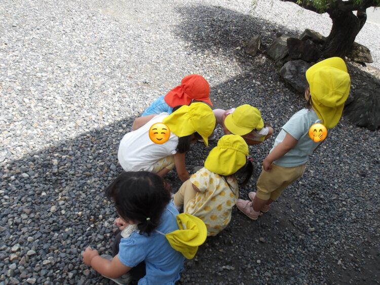 地面のたくさんの石ころの中からアリさんを見つけてお友達とお話しをしながら見たり、触ったりしている子もいました!!