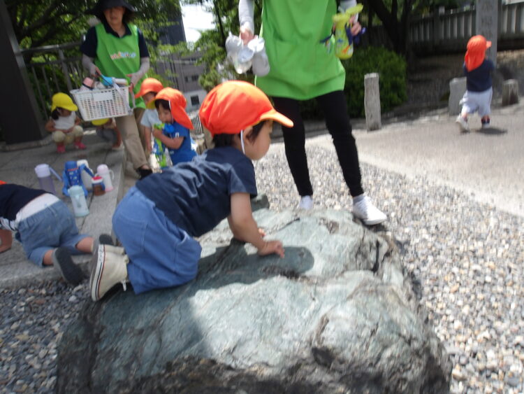 こんな大きな石に乗ってみたりして遊んでいるお友達がいましたよ!