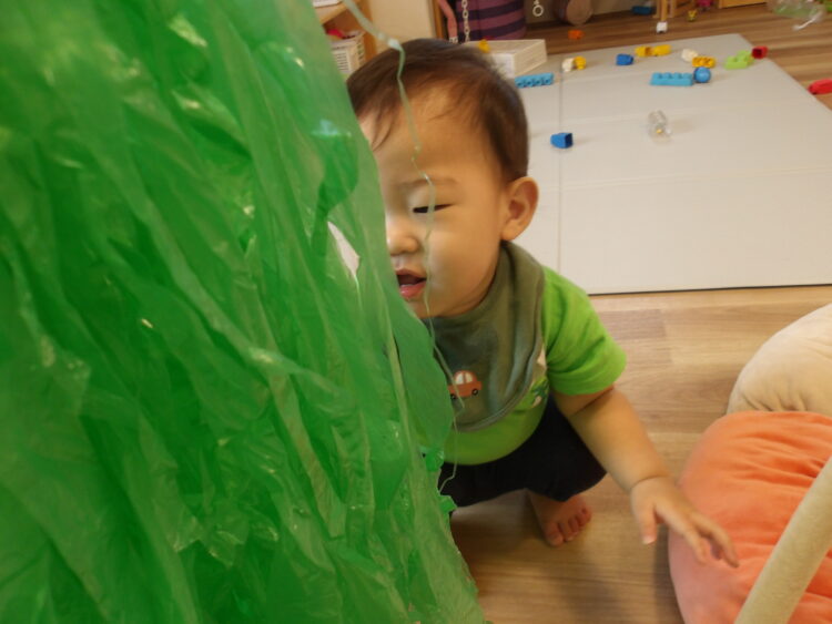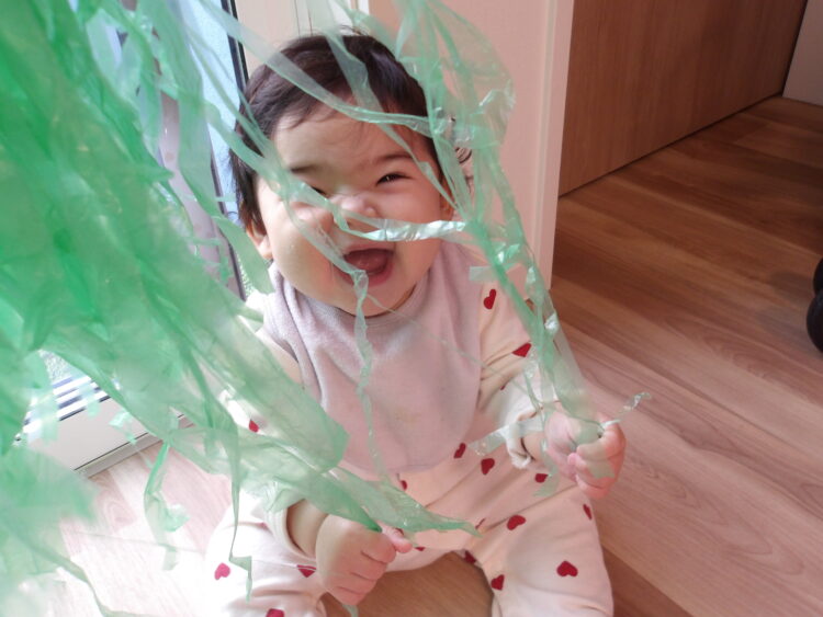 お部屋でトンネルくぐりや、シャカシャカと音が鳴って遊びました![]()