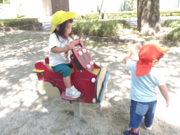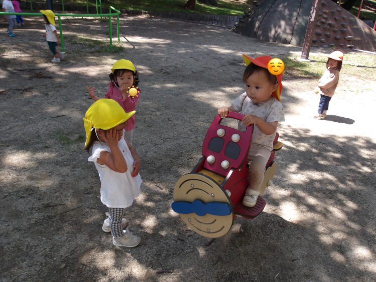 乗っているお友達の後ろを押してゆらゆらして楽しんでいる子もいましたよ🎵